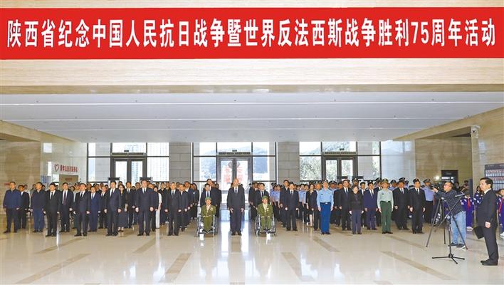 9月3日,陜西省在延安市隆重舉行紀(jì)念中國人民抗日戰(zhàn)爭暨世界反法西斯戰(zhàn)爭勝利75周年活動(dòng),深切緬懷革命先烈,大力弘揚(yáng)延安精神,動(dòng)員和激勵(lì)全省干部群眾不忘初心、牢記使命,為奮力譜寫陜西新時(shí)代追趕超越新篇章、實(shí)現(xiàn)中華民族偉大復(fù)興的中國夢(mèng)而努力奮斗。