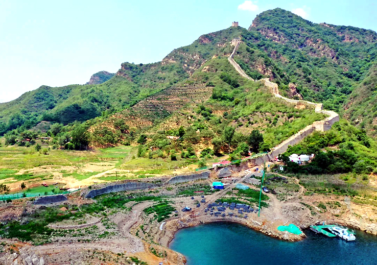 從空中俯瞰,長城順著逶迤的燕山山脈一直伸向水岸邊,猶如巨龍一頭扎進水里。一座水庫的出現(xiàn),不經(jīng)意間營造了絕美的“長城水鄉(xiāng)”。