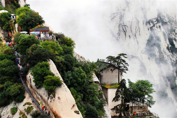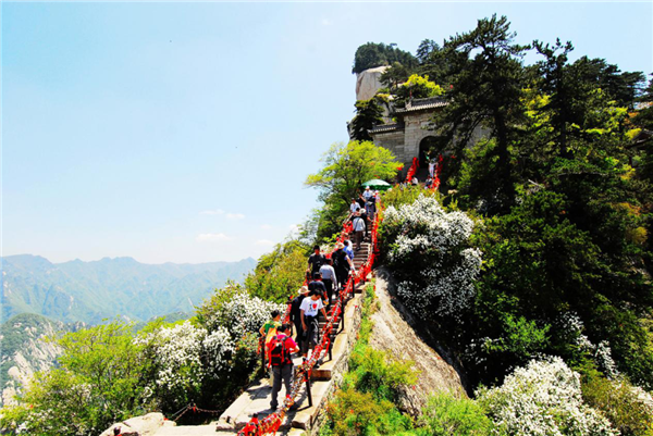 除了險(xiǎn)峻秀麗的自然風(fēng)光,華山的人文特色也讓人神往。西岳廟、云臺(tái)觀、玉泉院、鎮(zhèn)岳宮、玉女祠、全真觀、圣母殿、毛女祠、煉丹爐和巨靈祠所代表的道教文化,秦始皇、武則天、乾隆皇帝多次“駕幸及此”、“駐蹕憑眺”華山留下的摩崖石刻更是中華民族的文化隗寶。