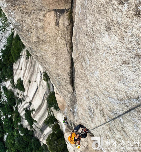 自然巖壁結組攀登源自軍事特戰(zhàn)項目,它就像是巖壁上的“馬拉松”,攀登大巖壁路線,攀巖隊伍需要使用吊帳和拖包等更多安全裝備完成多日攀登。從最基礎的攀登動作練習,到完成近千米的大巖壁攀登,這不僅將考驗運動員們的攀巖技術,還要挑戰(zhàn)他們在巖壁上的生存能力。此次自然巖壁結組攀登的巖壁甄選白云峰,其位于華山北峰云臺峰之北,石白如雪,一年四季白云繚繞,隨云飄浮而升降起伏,如海中的大魚隨浪翻滾,極其壯觀,而攀巖隊員們此次就需要在這600多米高的巖壁線路上生活至少2天。
