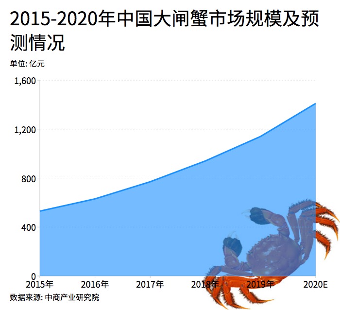 大閘蟹又被稱為中華絨螯蟹,分布在我國北起遼河南至珠江,其中以長江水系產(chǎn)量最大。近年來隨著消費者對大閘蟹的喜愛程度的提高,其市場需求不斷增長。據(jù)相關數(shù)據(jù)統(tǒng)計2018年大閘蟹產(chǎn)量高達80萬噸左右,產(chǎn)業(yè)規(guī)模2019年突破億元,年增速約20%。據(jù)預測,到2020年我國大閘蟹市場規(guī)?;蚪咏?500億元。