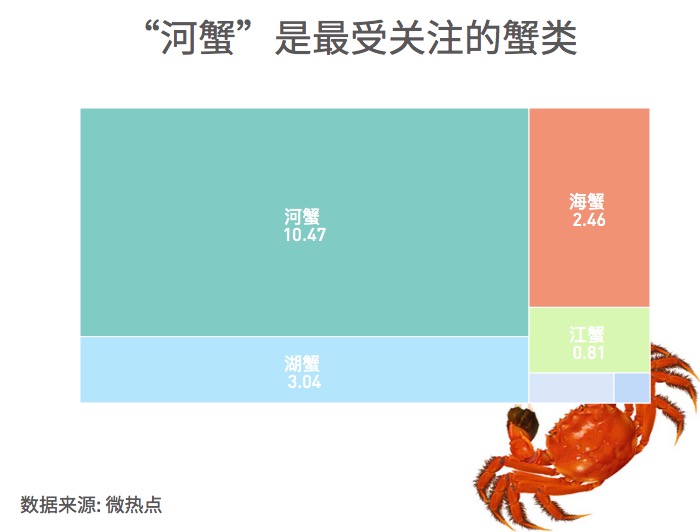 在“吃貨”眼里,占據(jù)C位的仍是最著名的“中華絨螯蟹”,也就是人們俗稱的“大閘蟹”。在“不同蟹類網(wǎng)絡關注度調查”中,大閘蟹名列前茅,緊隨其后的是梭子蟹和青蟹 。