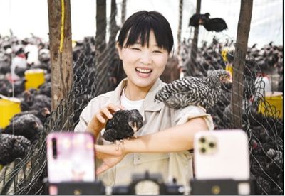 陜西省商洛市丹鳳縣寺坪鎮(zhèn)寺坪村網(wǎng)絡(luò)主播李萌在直播介紹自家養(yǎng)的蘆花雞。 |