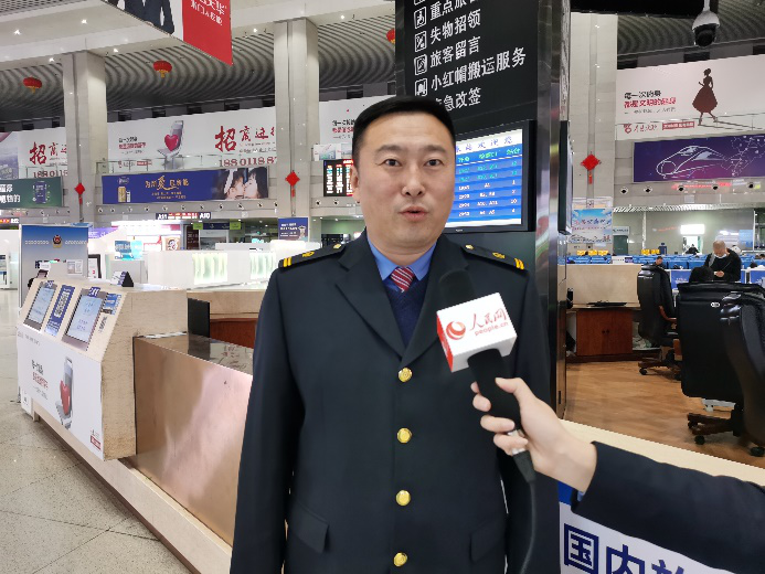 長(zhǎng)春站客運(yùn)車(chē)間值班站長(zhǎng)趙宇接受人民網(wǎng)采訪。人民網(wǎng) 王帝元攝