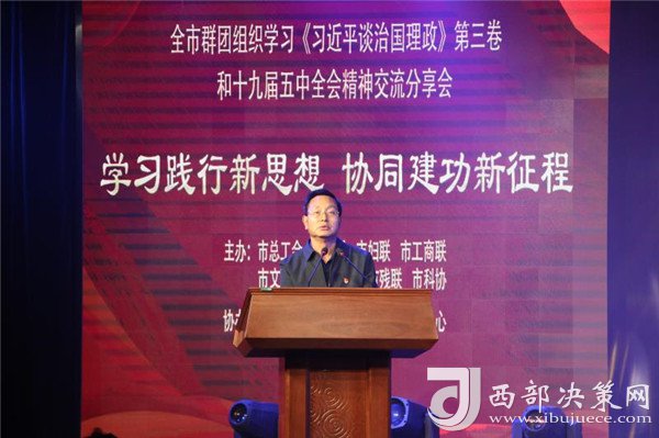 西部決策網(wǎng)訊 為深入貫徹習(xí)近平新時(shí)代中國(guó)特色社會(huì)主義思想,學(xué)習(xí)宣傳貫徹《習(xí)近平談治國(guó)理政》第三卷、黨的十九屆五中全會(huì)精神,加快群團(tuán)協(xié)同化建設(shè)進(jìn)程,11月5日,西寧市總工會(huì)牽頭召開市級(jí)群團(tuán)組織“學(xué)習(xí)踐行新思想 協(xié)同建功新征程”為主題的學(xué)習(xí)《習(xí)近平談治國(guó)理政》第三卷和黨的十九屆五中全會(huì)精神交流分享會(huì),市委常委、宣傳部部長(zhǎng)、市總工會(huì)主席王霞出席會(huì)議并講話。全市各群團(tuán)組織負(fù)責(zé)同志、勞模代表和干部職工群眾共300余人參加活動(dòng)。