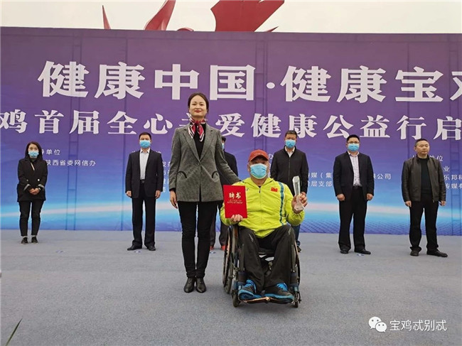 啟動儀式上,寶雞籍殘奧會鐵餅冠軍范良受聘擔任本次健康公益行形象大使,他曾代表中國出戰(zhàn)2004雅典殘奧會,2008北京殘奧會,2012年倫敦殘奧會,兩次以優(yōu)異的成績獲得金牌,并打破世界紀錄,為中國人民贏得了榮譽。其中,2004雅典殘疾人奧運會、2008北京殘奧會鐵餅金牌得主。退役后帶領(lǐng)寶雞地區(qū)殘疾人創(chuàng)業(yè),一直致力于公益事業(yè)發(fā)展。