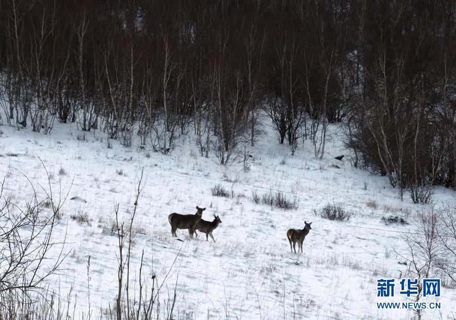 11月27日在黃崗梁國(guó)家森林公園拍攝的野生馬鹿。新華社發(fā)(宿海東 攝)