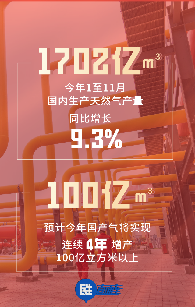 一是國(guó)內(nèi)生產(chǎn)穩(wěn)定。今年1至11月,國(guó)內(nèi)生產(chǎn)天然氣1702億立方米,比去年同期增長(zhǎng)9.3%,預(yù)計(jì)今年國(guó)產(chǎn)氣將實(shí)現(xiàn)連續(xù)4年增產(chǎn)100億立方米以上,這為穩(wěn)定供氣奠定扎實(shí)基礎(chǔ)。