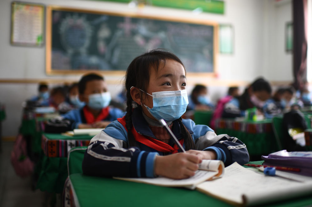 ↑ 在青海省玉樹藏族自治州八一孤兒學(xué)校,學(xué)生們在進行課間活動(2020年4月3日攝)。 新華社記者 張龍 攝
