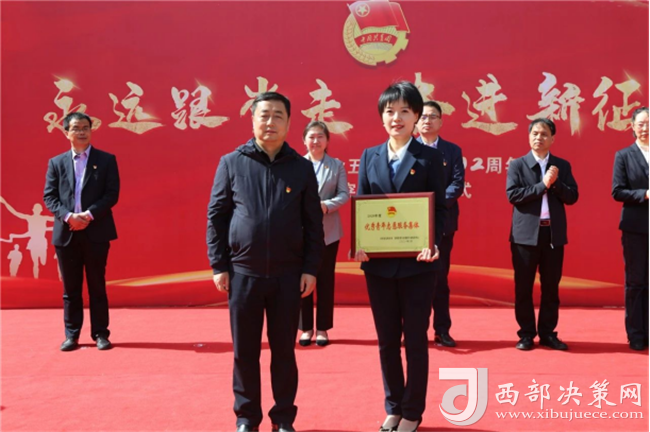 集團(tuán)公司黨委副書記郭拴新為寶雞市首屆“最美青工”李飛、祁耀華頒獎(jiǎng)