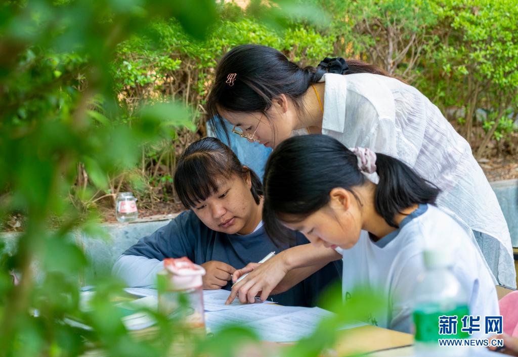 5月24日,漾濞一中老師(中)在輔導(dǎo)高三年級學(xué)生。新華社記者陳欣波攝