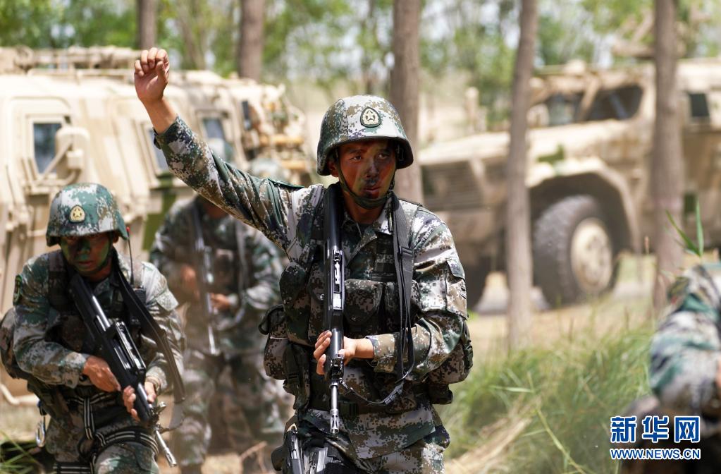 陸軍第76集團(tuán)軍某特戰(zhàn)旅特戰(zhàn)營營長劉近帶領(lǐng)特戰(zhàn)小隊(duì)進(jìn)行突擊清剿行動(7月14日攝)。新華社記者張永進(jìn)攝