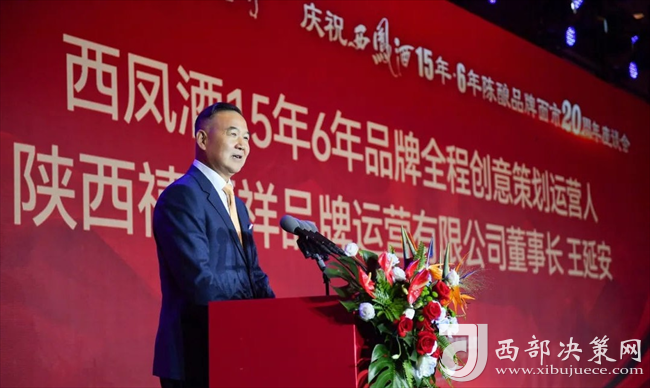西鳳酒15年6年品牌全程創(chuàng)意策劃運營人、陜西禧福祥品牌運營有限公司董事長王延安發(fā)表講話。王延安董事長對支持西鳳酒15年6年陳釀品牌發(fā)展的西鳳酒廠各級領(lǐng)導、全省合作盟友、供應商、媒體朋友及社會各界朋友表示感謝!風雨同舟20載,攜手并進創(chuàng)輝煌。一切美好生活的實現(xiàn)都包含在“禧福祥”三個字里。