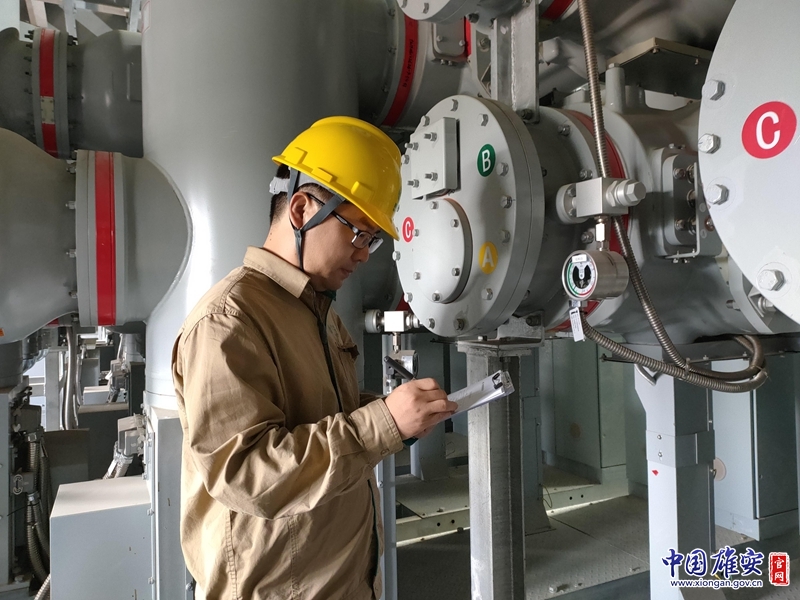 國網(wǎng)雄安新區(qū)供電公司變電運(yùn)維人員在220千伏劇村變電站進(jìn)行設(shè)備特巡。常翠穎 攝