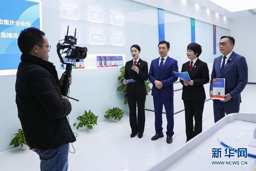 重慶知識(shí)產(chǎn)權(quán)法庭副庭長(zhǎng)譚穎在直播中向網(wǎng)友普及知識(shí)產(chǎn)權(quán)保護(hù)的相關(guān)法律知識(shí)。新華網(wǎng)發(fā)(吳川嬌 攝)