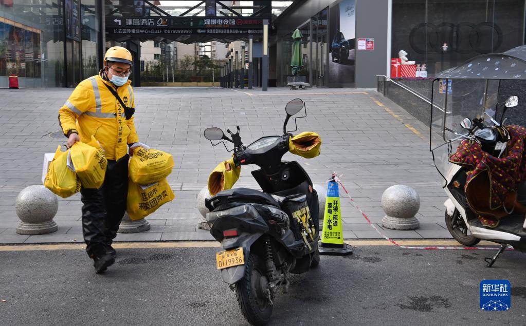 12月26日,配送員準(zhǔn)備領(lǐng)取需要配送的貨物。新華社記者 陶明 攝