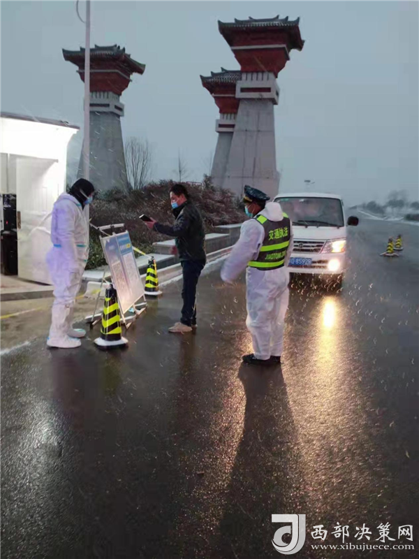 12月24日下午,禮泉縣城區(qū)實行交通管制,縣城所有小區(qū)實行封閉式管理??h交通運輸局黨員干部,矗立于雨雪之中,不畏嚴寒,嚴格把控,為全縣人民筑起安全屏障。