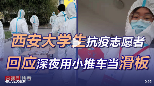 用小推車當(dāng)滑板滑回宿舍的視頻