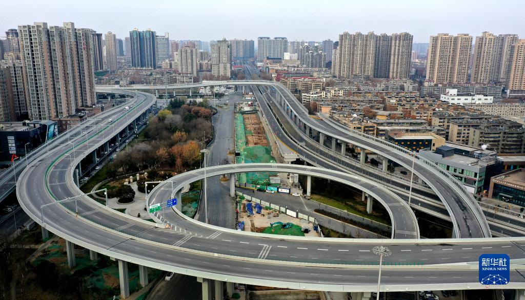 12月28日拍攝的西安市南二環(huán)一處立交橋(無人機(jī)照片)。新華社記者 陶明 攝