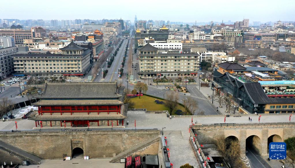 12月28日拍攝的西安市永寧門附近區(qū)域(無人機(jī)照片)。新華社記者 陶明 攝