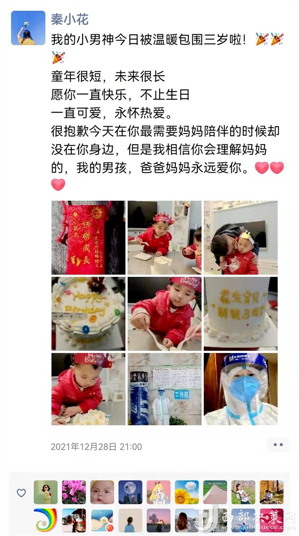 12月28日,是她兒子三歲生日,兒子生病時,她在西安支援。如今,兒子生日,她又在隔離點(diǎn),她把對兒子的愧疚之心轉(zhuǎn)化為對隔離群眾的關(guān)愛之心。