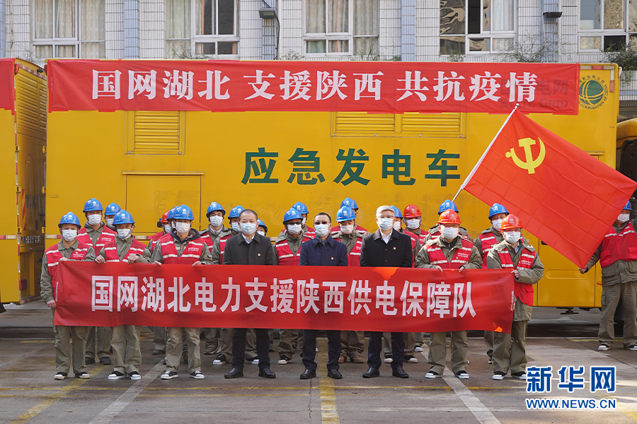 國(guó)網(wǎng)湖北省電力有限公司支援陜西抗擊疫情保供電隊(duì)伍出征儀式12月30日在湖北武昌配電運(yùn)檢分公司舉行,來(lái)自武漢供電公司的20名職工、5輛應(yīng)急發(fā)電車(chē)、2輛工程車(chē)將奔赴陜西省西安市執(zhí)行抗疫保電任務(wù)。