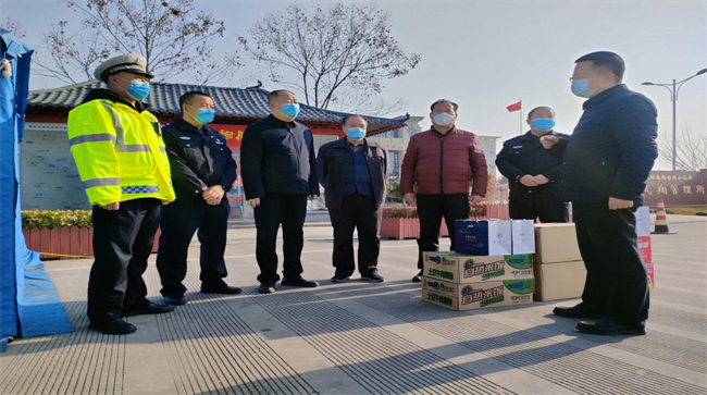 西部決策網(wǎng)訊(韓宗憲)1月2日,寶雞市鳳翔區(qū)委常委、宣傳部部長(zhǎng)賈亞斌赴西寶高速鳳翔出口、旬鳳高速西鳳口、橫水尹家塢卡點(diǎn)檢查指導(dǎo)新冠肺炎疫情防控工作,為節(jié)假日仍?shī)^戰(zhàn)在一線的執(zhí)勤民警、醫(yī)務(wù)人員和志愿服務(wù)者送去自熱米飯、方便面、純牛奶等慰問(wèn)品。鳳翔區(qū)民政局、區(qū)慈善協(xié)會(huì)負(fù)責(zé)同志陪同慰問(wèn)。