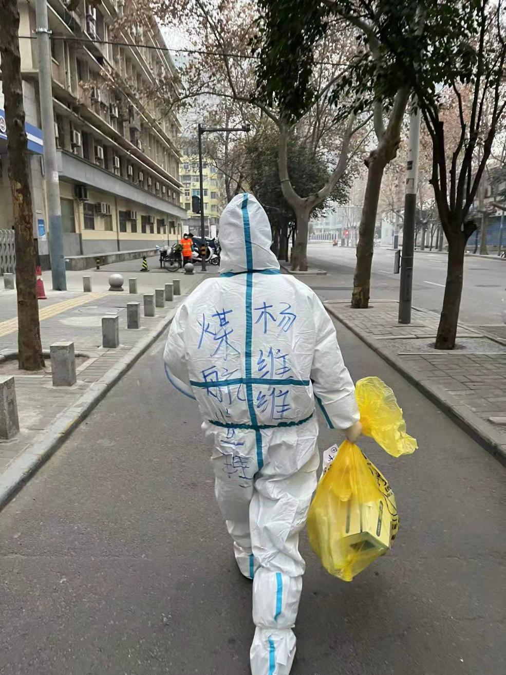 12月23日,全城封閉,西安進入戰(zhàn)備狀態(tài)。我的鄰居已被列為重點隔離觀察對象,每天都有穿著白色防護服的醫(yī)護人員上門進行核酸檢測,第一次讓我感到疫情風險近在眼前,但更讓我擔心的還是鄰居的日常生活和身體狀況,經與防疫人員溝通,我負責起了為鄰居取菜,扔垃圾等事情,保障鄰居安心隔離。