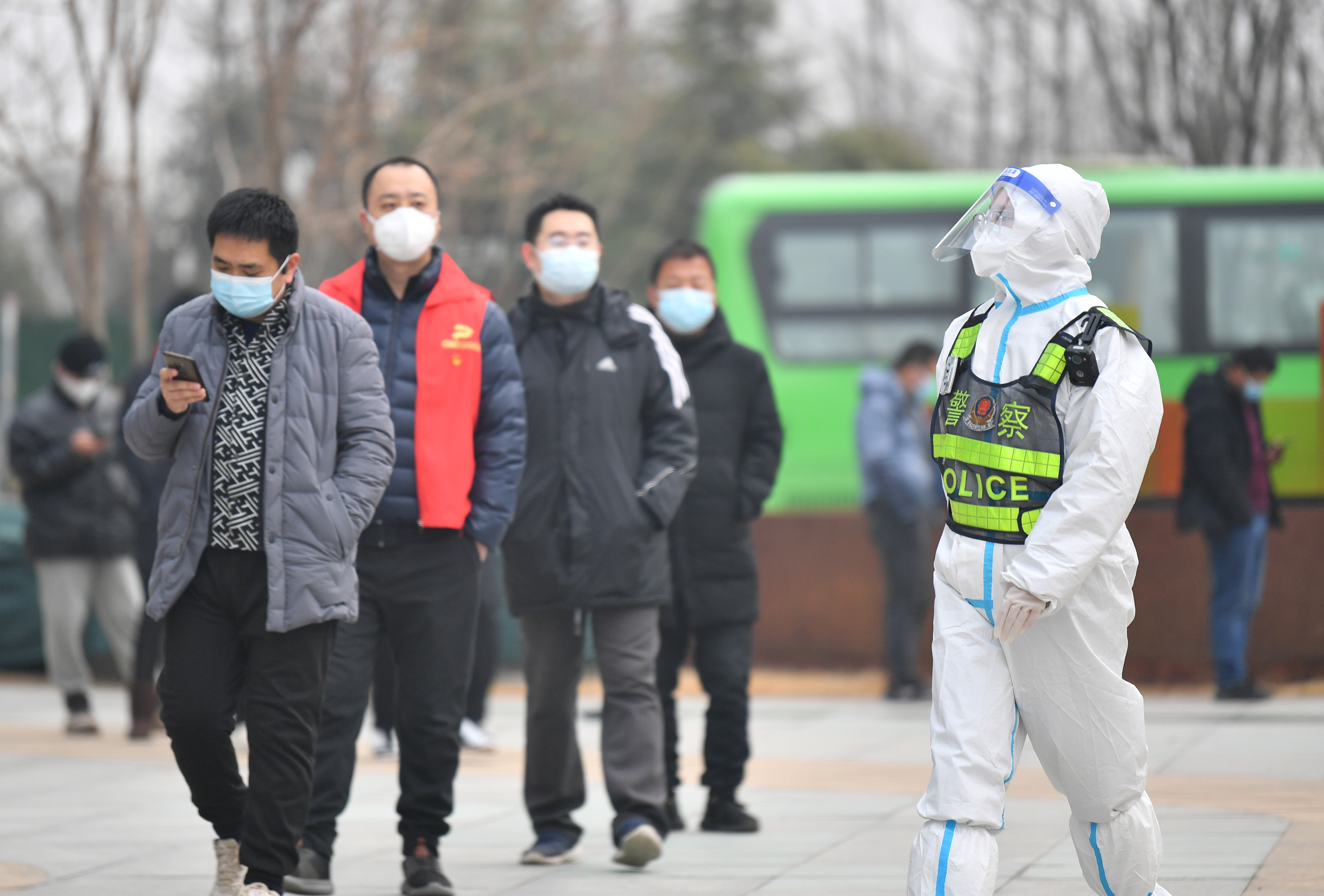 1月10日,西安市公安局浐灞生態(tài)區(qū)分局民警在轄區(qū)內(nèi)一處核酸檢測點(diǎn)執(zhí)勤。新華社記者 張博文 攝