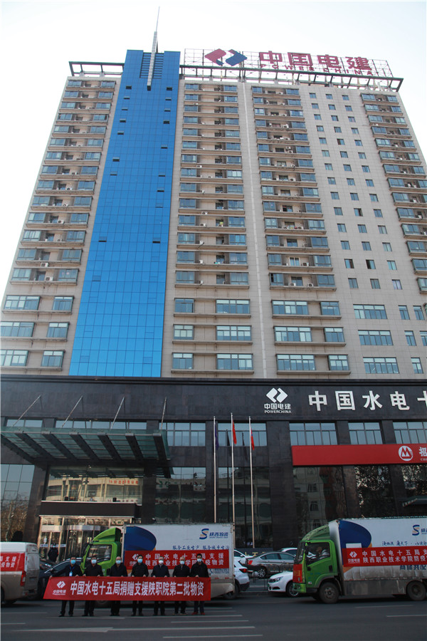 1月11日下午15:00,在陜西職業(yè)技術(shù)學(xué)院舉行簡短捐贈儀式,陜西職業(yè)技術(shù)學(xué)院黨委副書記、院長劉勝輝,黨委副書記、紀(jì)委書記何軍,副院長王慶等參加了捐贈儀式。劉勝輝代表學(xué)院黨委向我公司表示感謝,他表示,在疫情防控的關(guān)鍵時刻,水電十五局一周內(nèi)2批次送來價值近28萬元生活物資,及時緩解更極大充實和豐富了我??挂呱钗镔Y,為我院師生樹立了光輝榜樣,堅定了共克時艱的信心和決心。何軍向公司黨委副書記、紀(jì)委書記、工會主席任志宏贈送了捐款證明和感謝信。任志宏表示,水電十五局作為駐陜央企,一直以來,堅決貫徹落實黨中央決策部署,主動響應(yīng)陜西省委組織部和省國資委號召,面對此次疫情,將積極踐行央企擔(dān)當(dāng),履行社會責(zé)任,用實際行動為西安高校疫情防控貢獻(xiàn)一份力量!