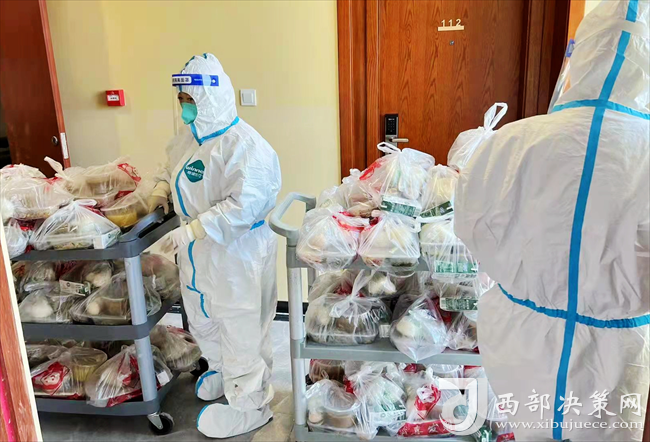 隔離區(qū)里,“大白”們每天準(zhǔn)時(shí)在取餐點(diǎn)將盒飯裝入餐車,迅速穿梭在各個(gè)樓層之間,只為隔離學(xué)生能盡快吃到熱乎的飯菜;送完餐顧不上休息,又開始對(duì)319間客房門口的生活垃圾進(jìn)行消毒、打包,再一趟趟送往廢棄物集中收儲(chǔ)點(diǎn);為防止疫情外溢,她們利用晚上休息時(shí)間,抓緊學(xué)習(xí)個(gè)人防護(hù)知識(shí),接受醫(yī)護(hù)人員專業(yè)培訓(xùn),將穿脫防護(hù)服、口罩、手套、護(hù)目鏡、腳套、消毒等每一個(gè)環(huán)節(jié)要求,牢牢刻在心里面、化在行動(dòng)上。