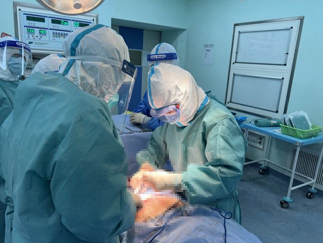 同時,護(hù)士長王沛第一時間打開隔離患者專用通道,再一次檢查確認(rèn)隔離病房的設(shè)備情況,做好接收患者的準(zhǔn)備。病房醫(yī)生則積極聯(lián)系手術(shù)室做好無核酸急診手術(shù)準(zhǔn)備,僅30分鐘,孕婦就被接往手術(shù)室。