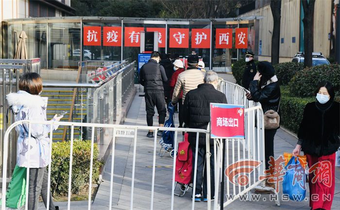 華商報(bào)記者看到,大唐不夜城處于封閉狀態(tài),步行街空無(wú)一人。大唐不夜城南端銀泰城盒馬鮮生門口,限流進(jìn)入,居民排隊(duì)有序。兩位男士拎著兩大包東西出來了,“在小區(qū)物業(yè)辦了通行證,買了不少東西。還好,大約排隊(duì)20分鐘就進(jìn)去了。”