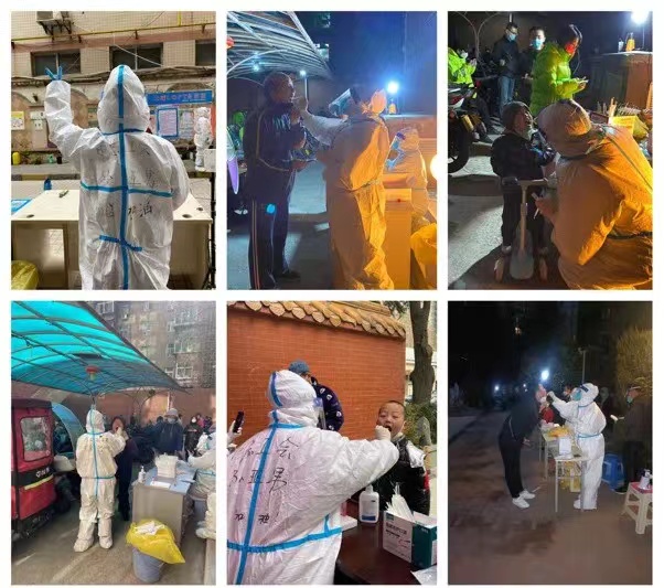 孫亞男在社區(qū)各個(gè)地點(diǎn)做核酸檢測。蓮湖區(qū)委組織部供圖