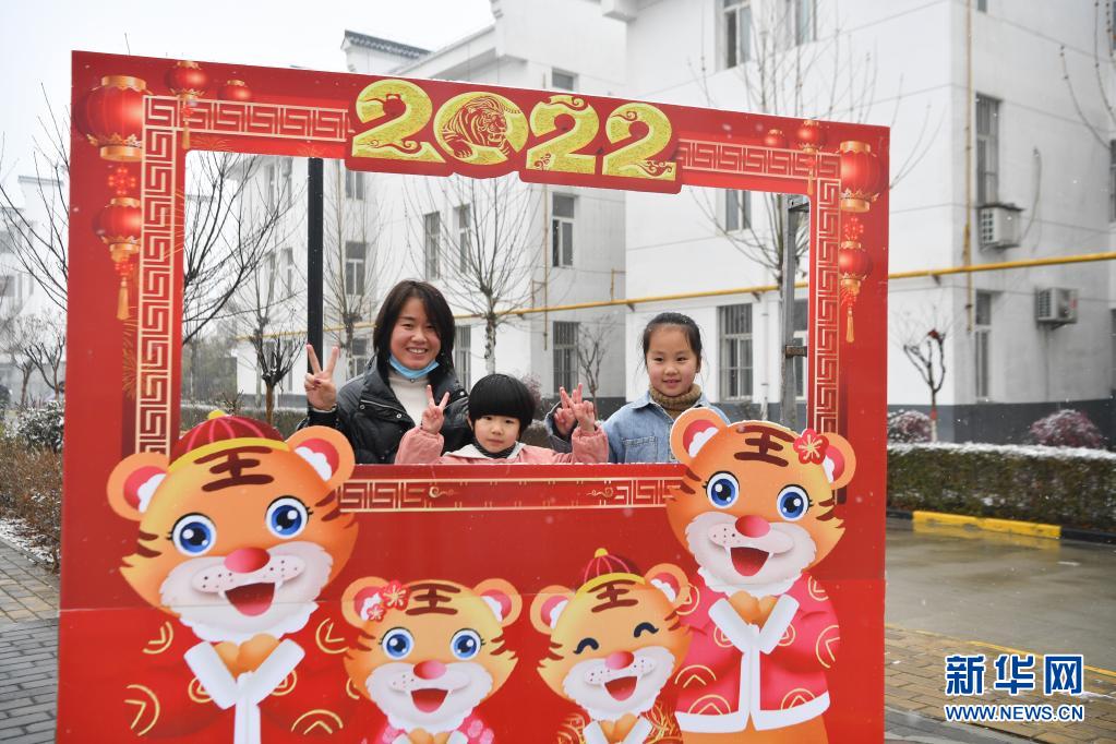 1月27日,西安市鄠邑區(qū)幸福佳苑社區(qū)居民在社區(qū)廣場合影。新華社記者 張博文 攝
