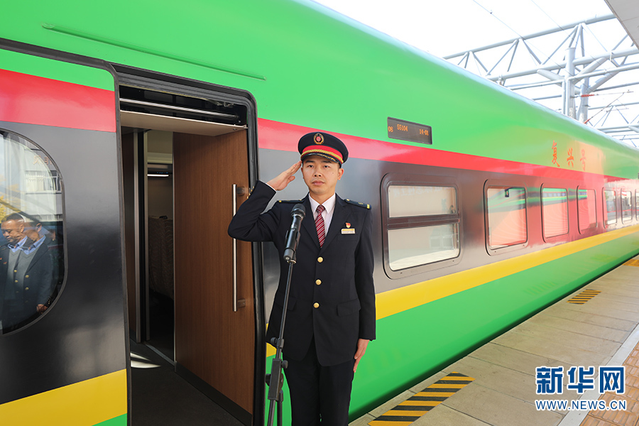 2021年12月3日,中老鐵路正式通車,開辟了中國國際鐵路運(yùn)輸新紀(jì)元,那一天,胡堅(jiān)站在站臺(tái)上,代表中國鐵路火車司機(jī)請(qǐng)示發(fā)車。(新華網(wǎng) 范芳鈺/文 昆明機(jī)務(wù)段供圖)