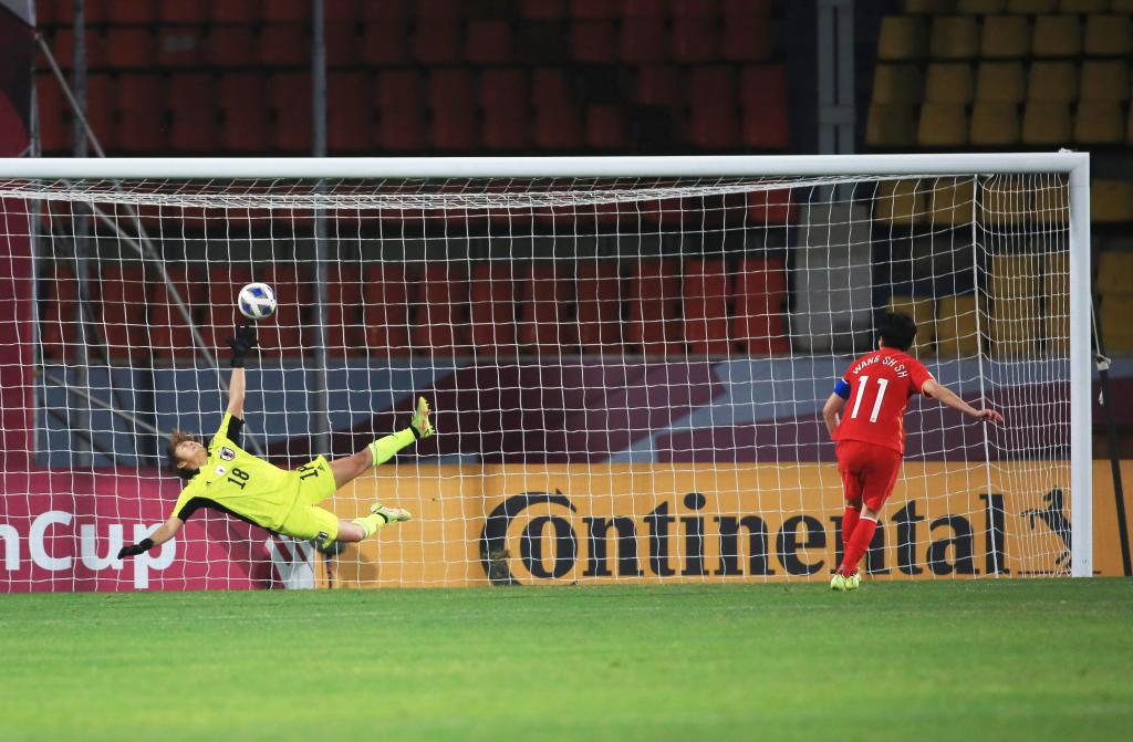 2月3日,中國隊(duì)球員王珊珊(右)在點(diǎn)球大戰(zhàn)中破門。新華社發(fā)(賈韋德·達(dá)爾攝)