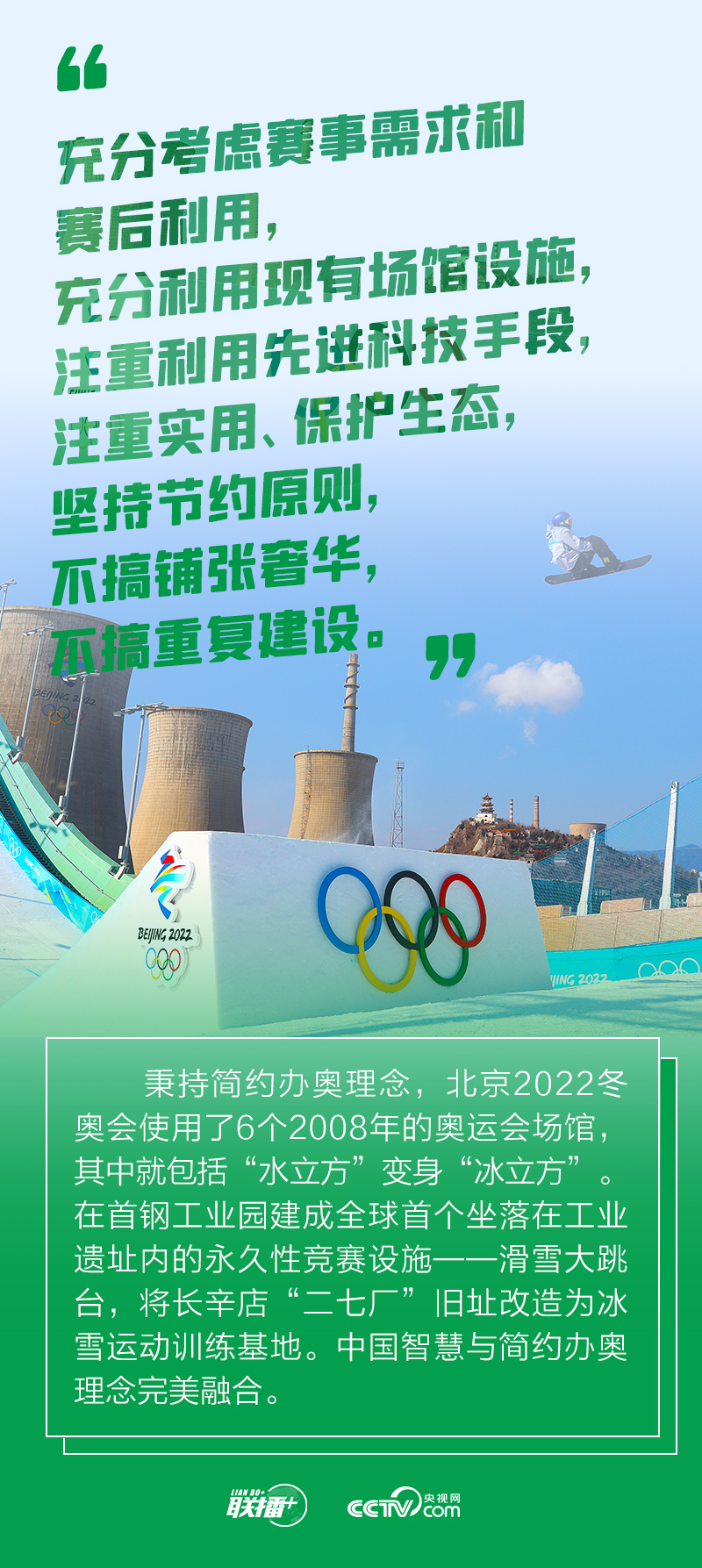 簡約不簡單。在世界百年未有之大變局和世紀疫情交織疊加的背景下,“簡約”作為辦賽要求之首,其意義更加凸顯。央視網(wǎng)《聯(lián)播+》特梳理總書記關(guān)于簡約辦奧的講話要點,與您一同學習領(lǐng)會。