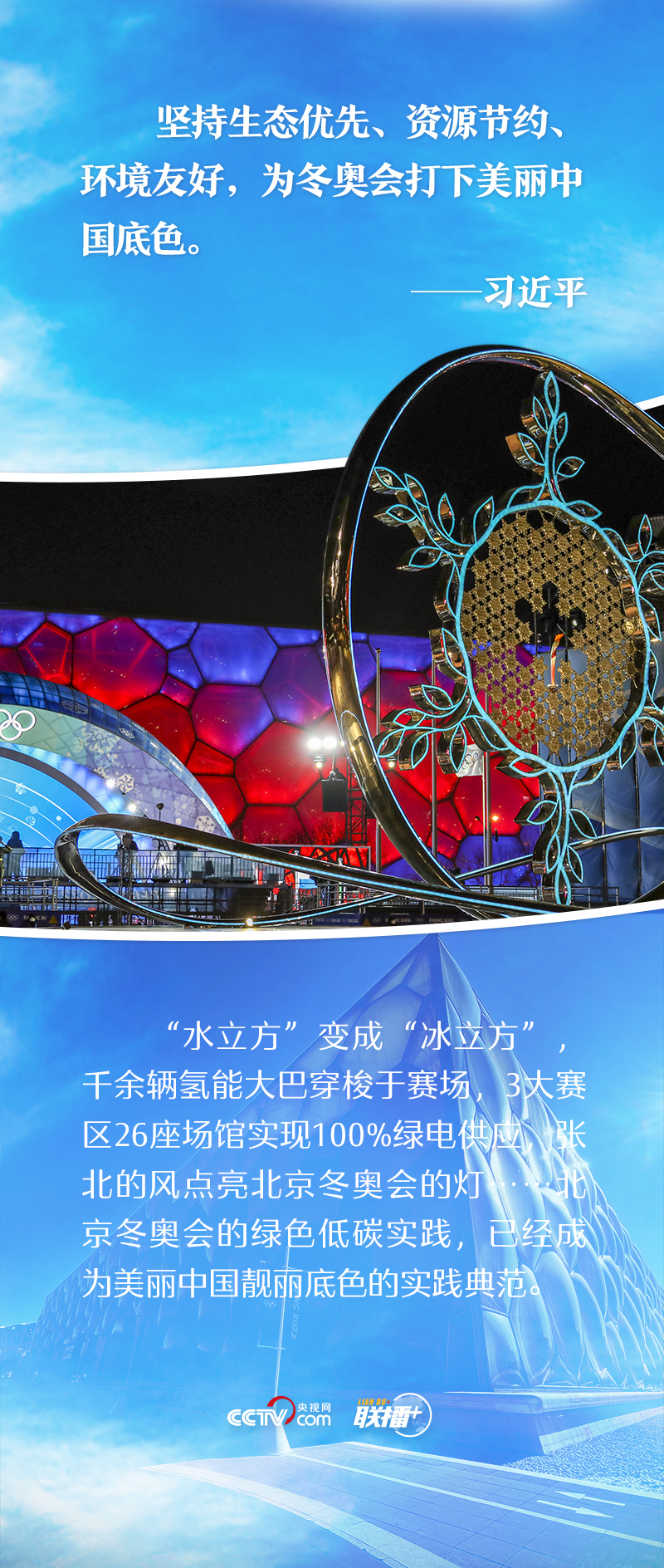 央視網(wǎng)《聯(lián)播+》特梳理總書(shū)記關(guān)于綠色辦奧的重要論述,與您一起了解中國(guó)交出的亮眼“綠色成績(jī)單”。