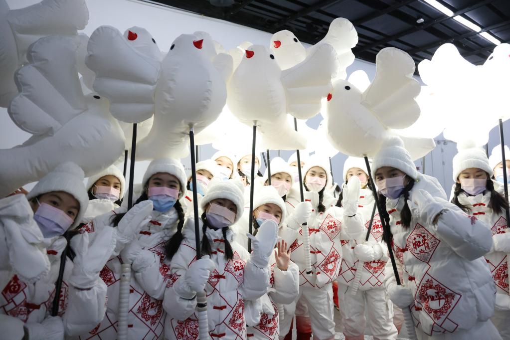1月27日,北京2022年冬奧會開幕式《雪花》幕后。圖為“小鴿子”們在彩排前候場。新華社記者許雅楠攝