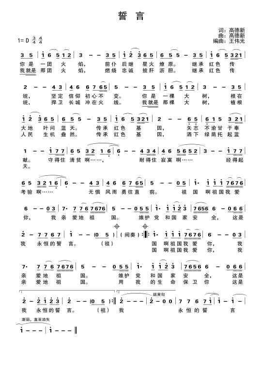 慶祝建黨百年獲獎歌曲作品選集——《誓言》歌詞。