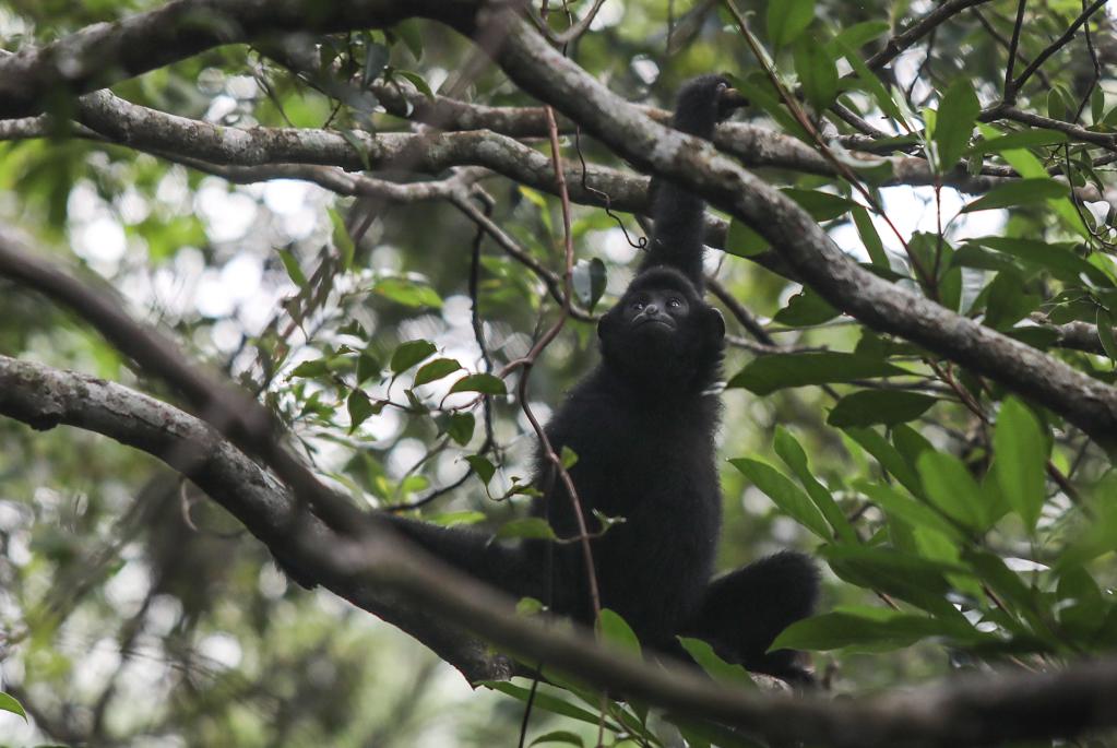 這是在海南霸王嶺自然保護區(qū)內拍攝的海南長臂猿(2019年10月25日拍攝)。新華社記者 蒲曉旭 攝