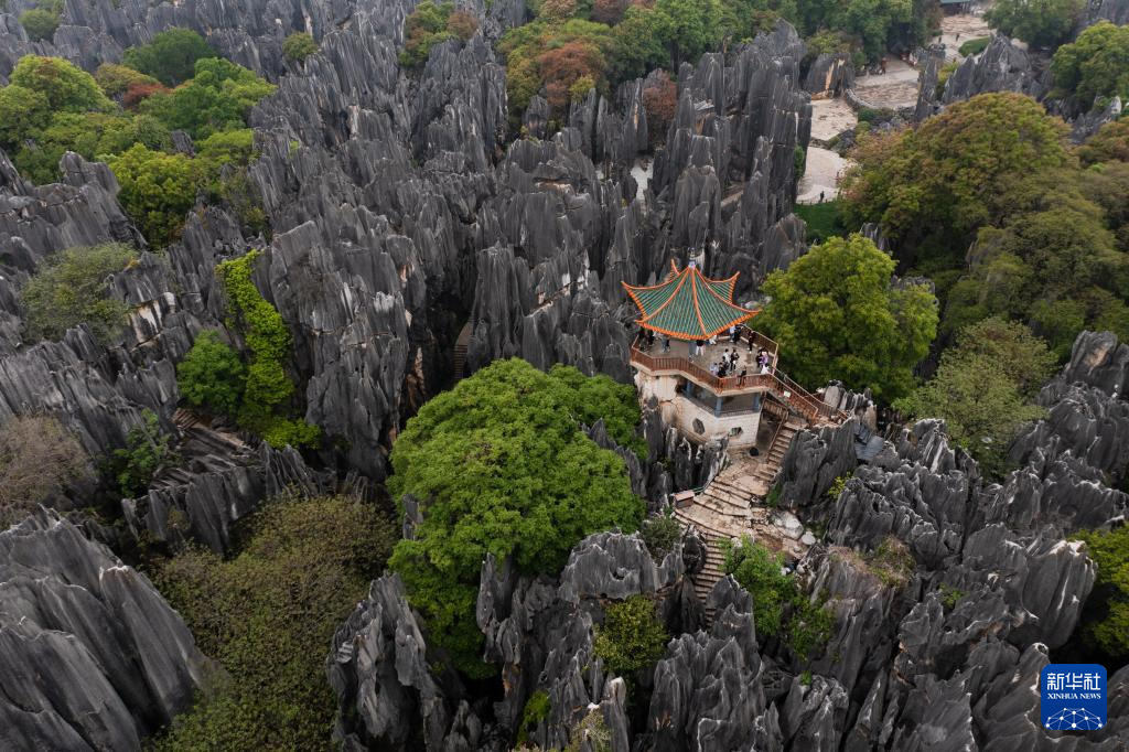 這是4月10日拍攝的大石林望峰亭(無(wú)人機(jī)照片)。新華社記者 王冠森 攝