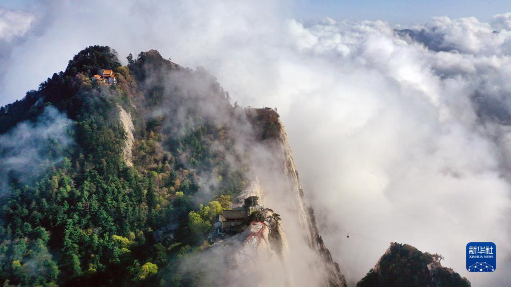 云霧中的華山(4月28日攝,無(wú)人機(jī)照片)。新華社記者陶明攝