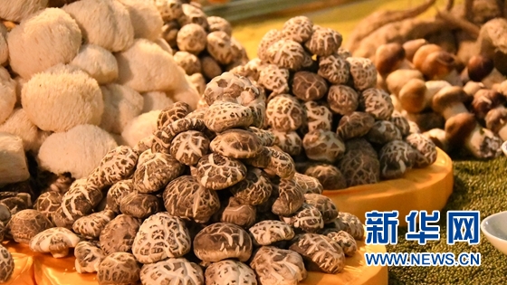 圖為隨州香菇在2021年湖北農(nóng)業(yè)博覽會上展出。新華網(wǎng)發(fā) 夏國燕攝