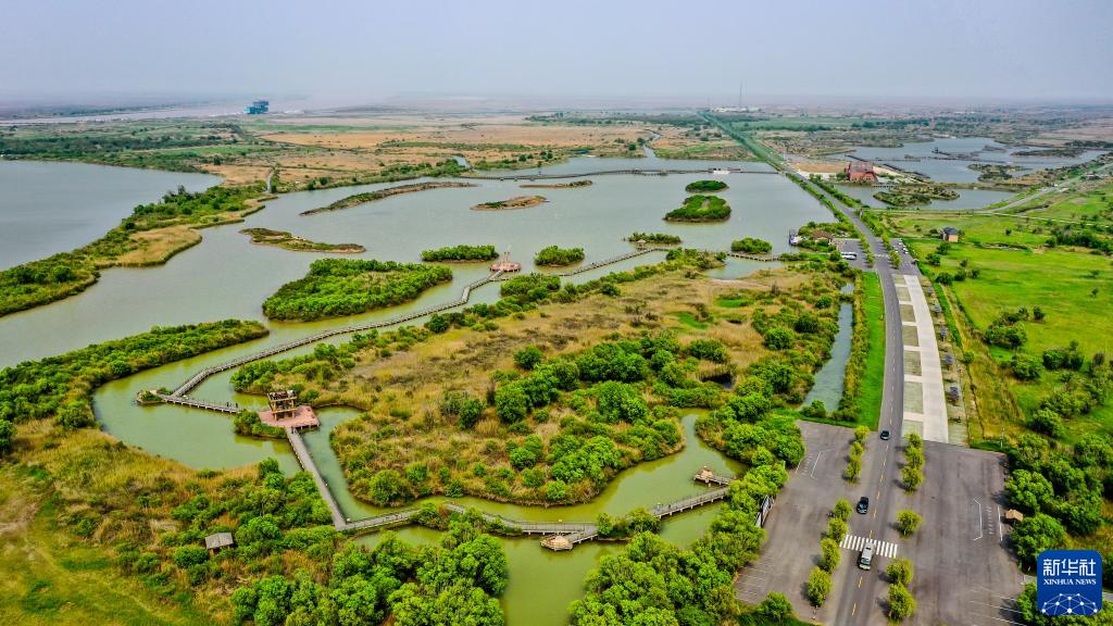 夏日的東營市黃河入海口濕地,綠草連天、百鳥翔集。