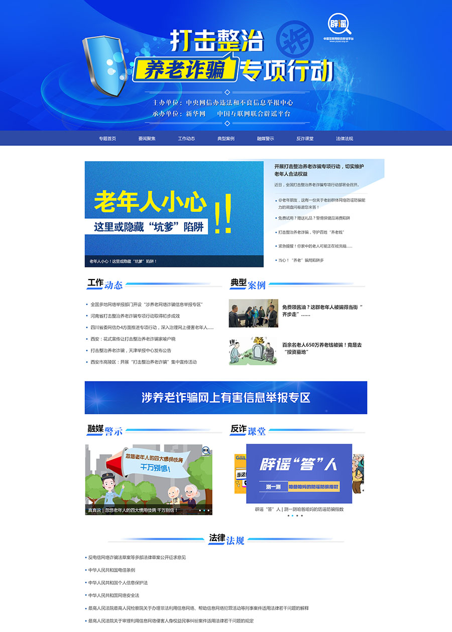 “打擊整治養(yǎng)老詐騙專項行動”專題截圖