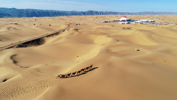 這是在寧夏中衛(wèi)市拍攝的騰格里沙漠(無人機(jī)照片,2018年9月7日攝)。 新華社記者 王鵬 攝
