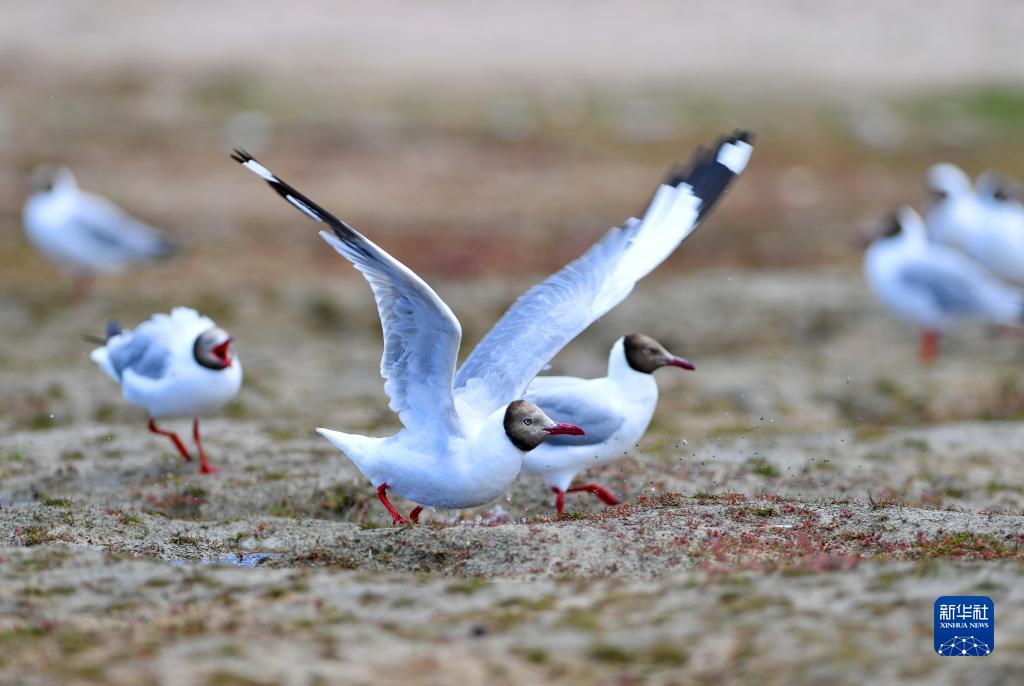 瑪旁雍錯(cuò)湖邊的棕頭鷗(8月2日攝)。新華社記者 張汝鋒 攝