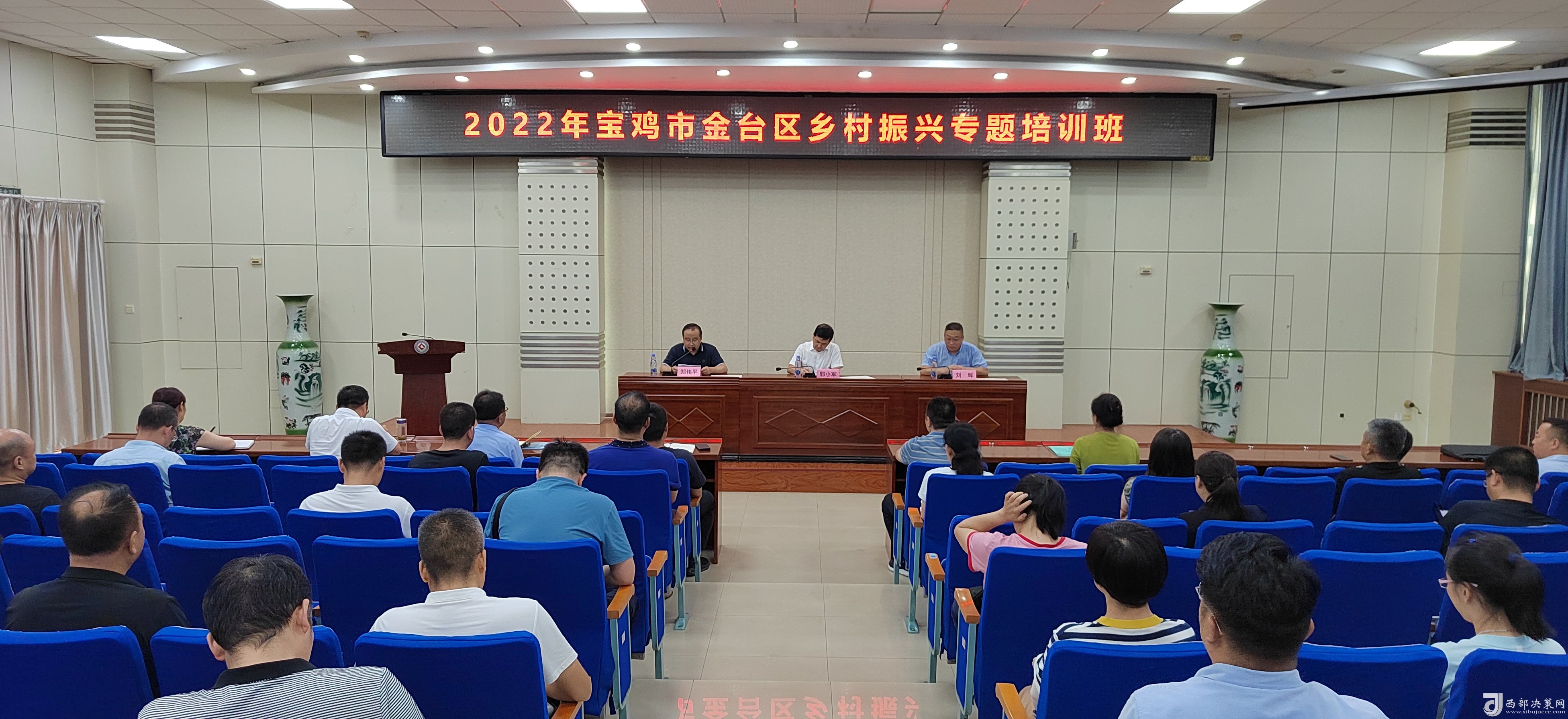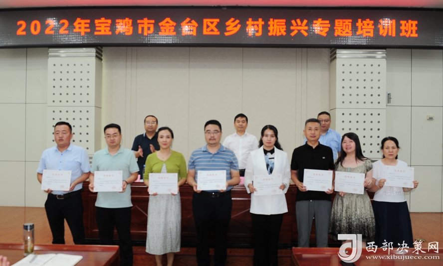 西部決策網(wǎng)訊 8月6日下午,為期三天的“2022年寶雞市金臺(tái)區(qū)鄉(xiāng)村振興專題培訓(xùn)班”結(jié)束了!60余學(xué)員順利的拿到了結(jié)業(yè)證。寶雞文理學(xué)院經(jīng)濟(jì)管理學(xué)院院長(zhǎng)、陜西鄉(xiāng)村振興研究中心主任劉輝;金臺(tái)區(qū)政府副區(qū)長(zhǎng)郭小軍出席了結(jié)業(yè)儀式。參加結(jié)業(yè)儀式的還有金臺(tái)區(qū)鄉(xiāng)村振興局主要負(fù)責(zé)人、分管領(lǐng)導(dǎo),各鎮(zhèn)涉農(nóng)街道黨(工)委書(shū)記和鄉(xiāng)村振興工作分管領(lǐng)導(dǎo),區(qū)委實(shí)施鄉(xiāng)村振興戰(zhàn)略領(lǐng)導(dǎo)小組和區(qū)委抓黨建促鄉(xiāng)村振興領(lǐng)導(dǎo)小組各成員單位分管領(lǐng)導(dǎo)。結(jié)業(yè)儀式由金臺(tái)區(qū)鄉(xiāng)村振興局局長(zhǎng)鄭偉平主持。